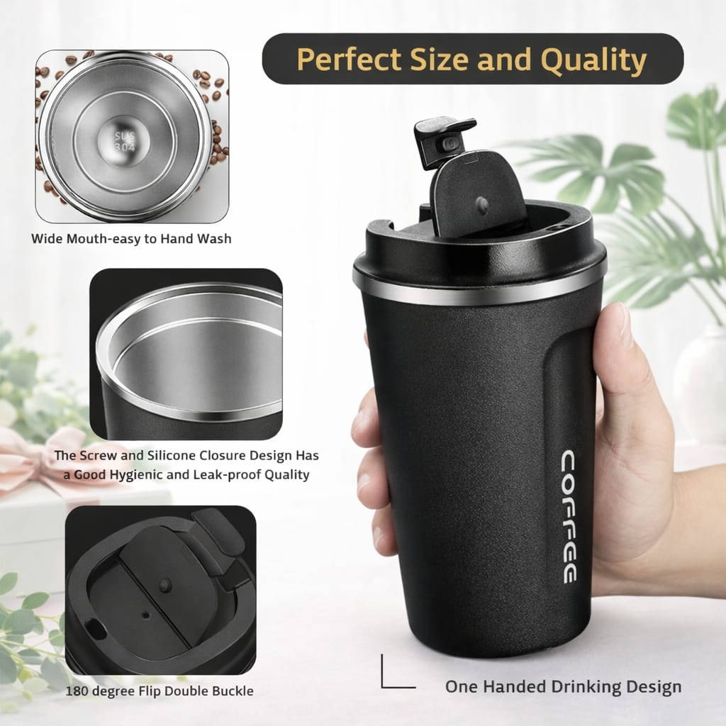 Introducing the DEERA Stainless Steel Vacuum Coffee Mug 510 ml — a premium, insulated mug designed for daily coffee lovers, commuters, and active lifestyles. Crafted from high-quality stainless steel, this durable mug delivers superior temperature retention, keeping your drinks hot or cold for hours.